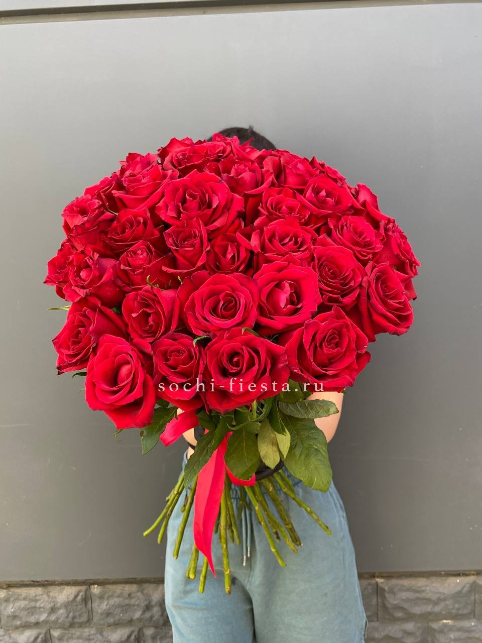 35 красных роз под ленту.