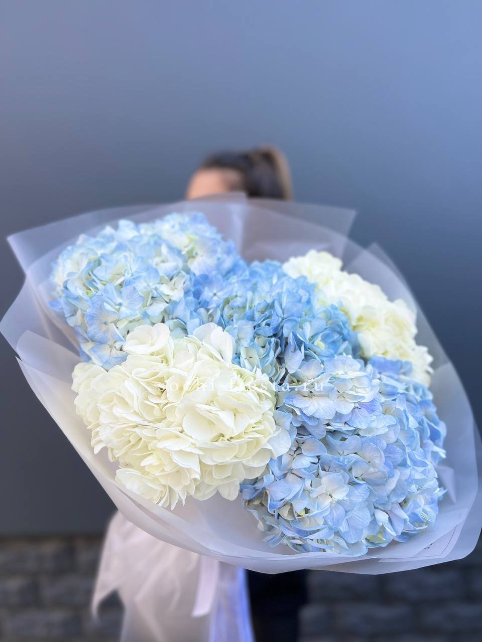Для заказа товара "5 бело-голубых гортензий" с доставкой в Белгороде нажмите в корзину