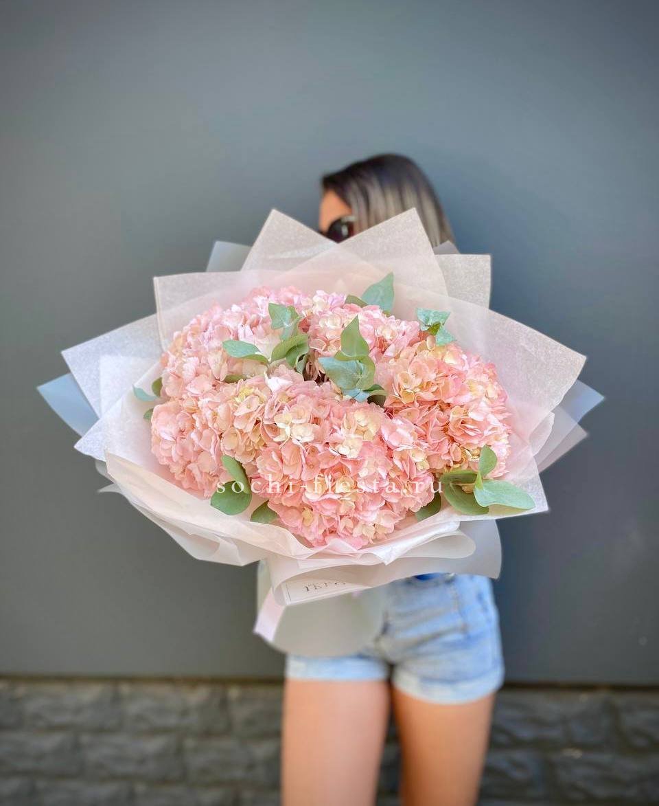 Для заказа товара "5 розовых гортензий " с доставкой в Белгороде нажмите в корзину