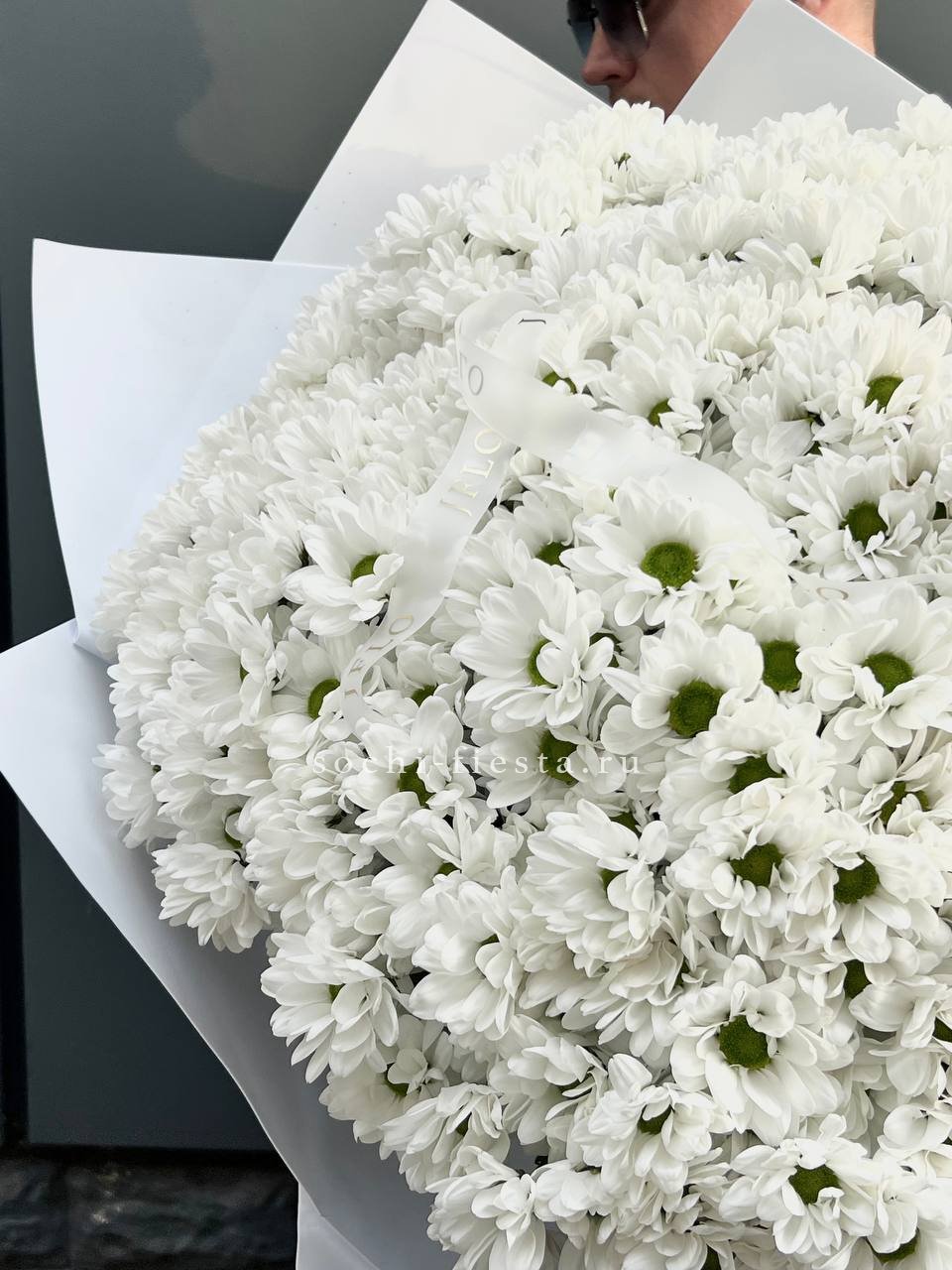 роскошный букет из 101 хризантемы.