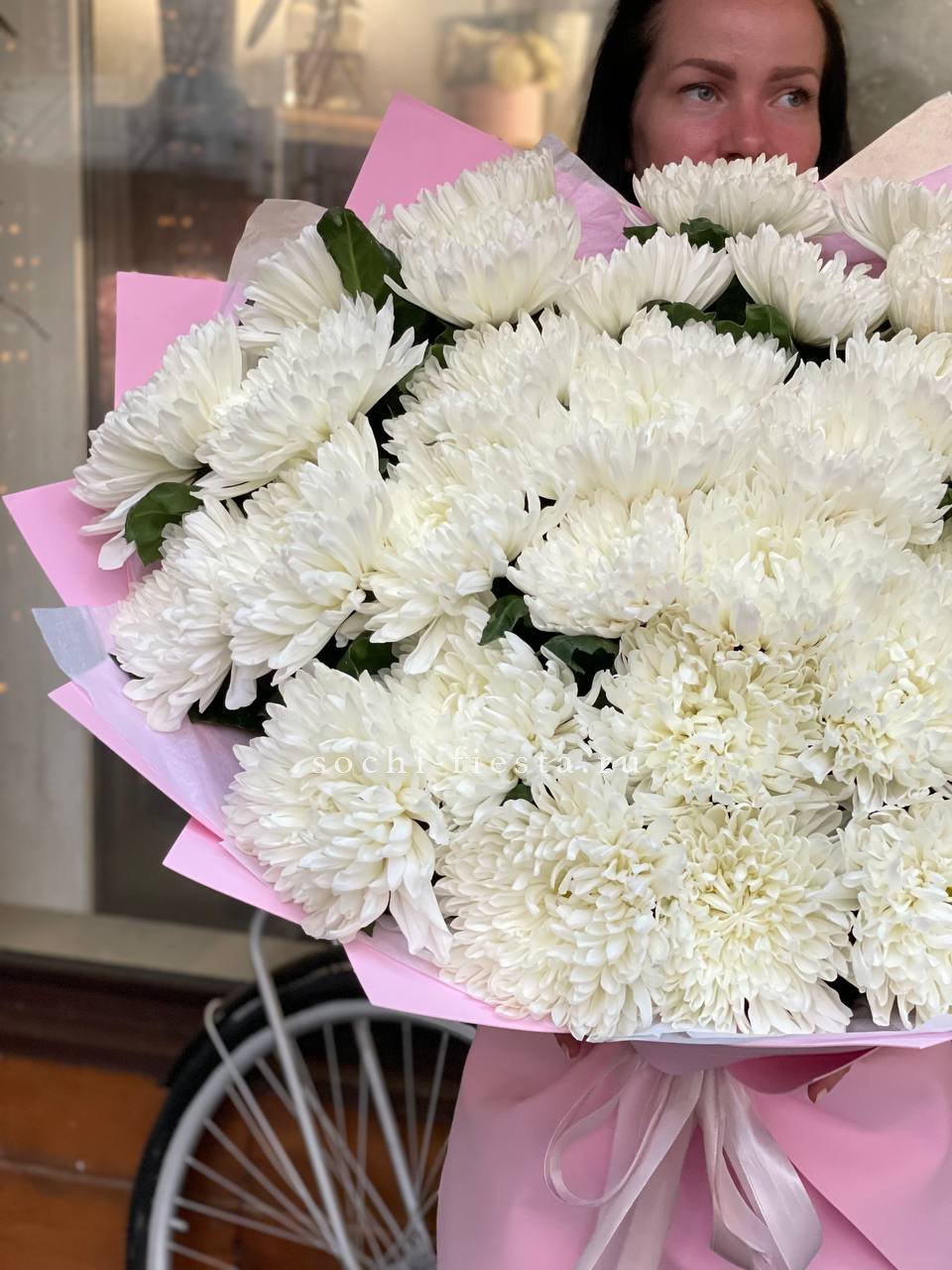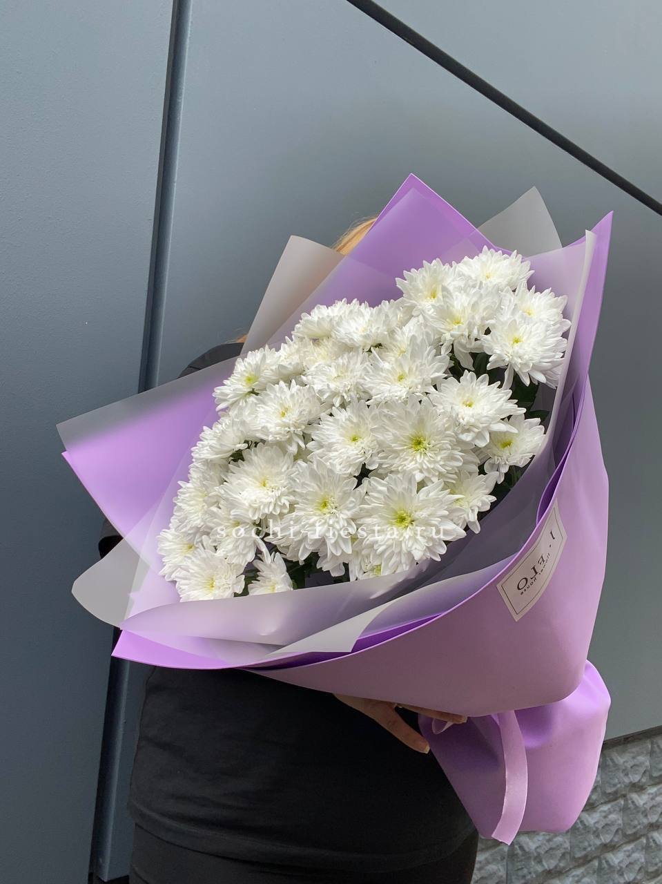 хризантема кустовая - 7 шт.,  лавандовый фоамиран,  лента