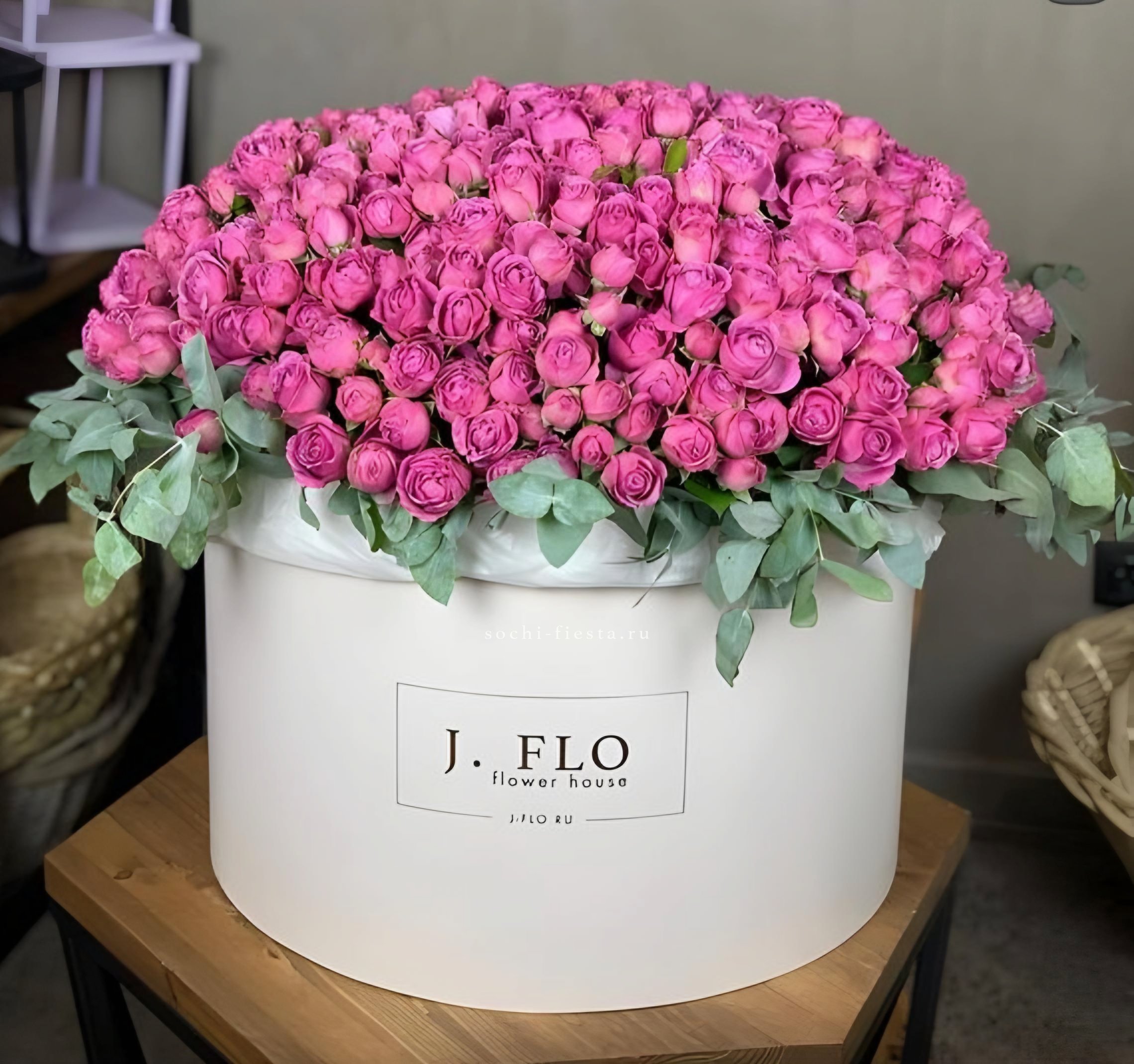 кустовая роза, лилия, диантус, лотос, эвкалипт, бокс 13.