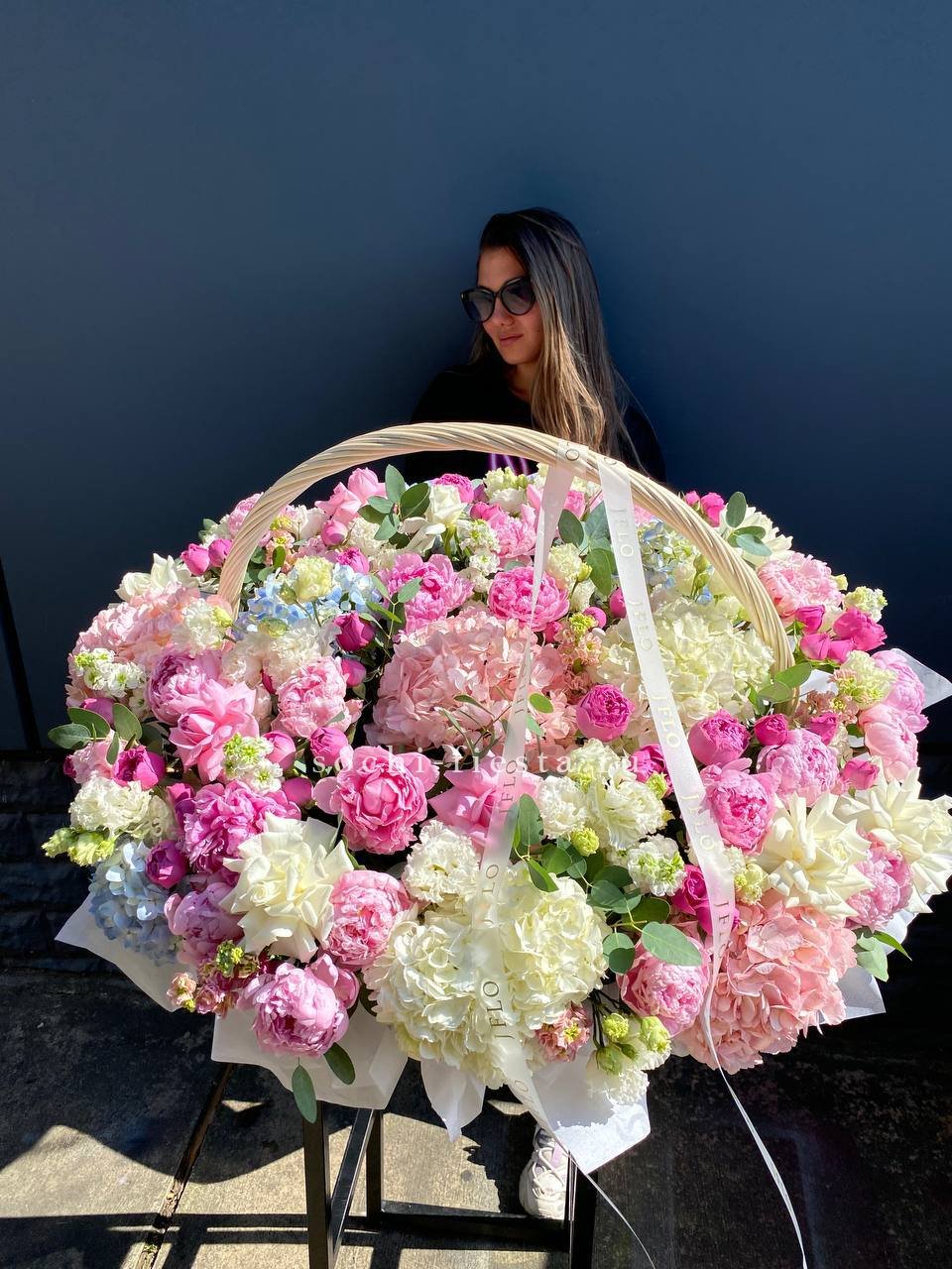 Корзина с гортензией и Мисти Баблс