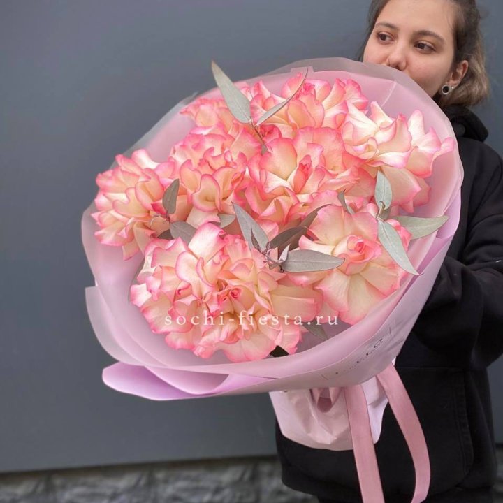 К заказу — открытка от руки, коробка конфет, воздушный шар, фото-отчёт перед отправкой. Для корпоративов и постоянных клиентов — подписочная модель с дисконтом и приоритетом на свежий привоз.