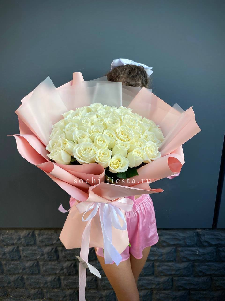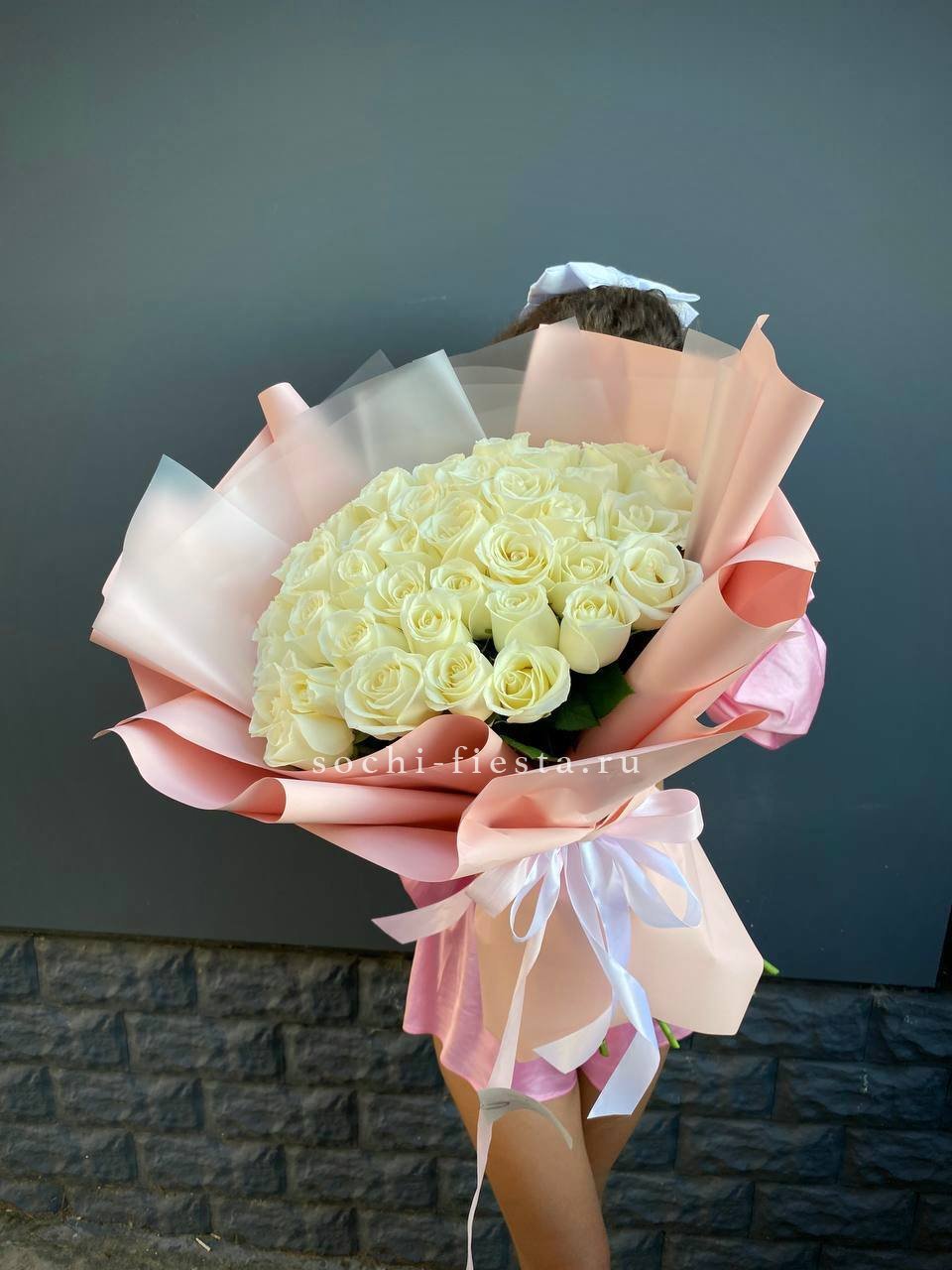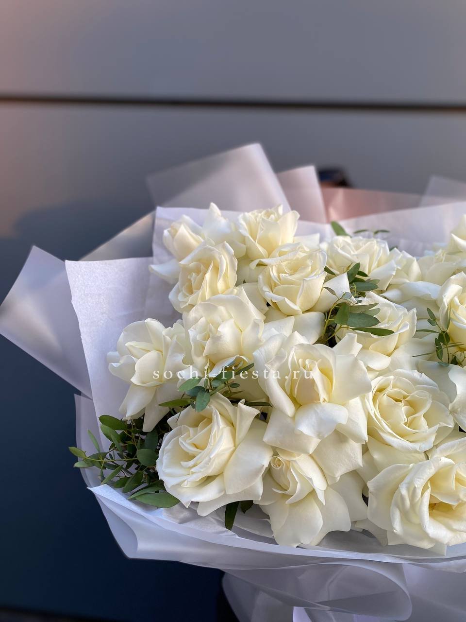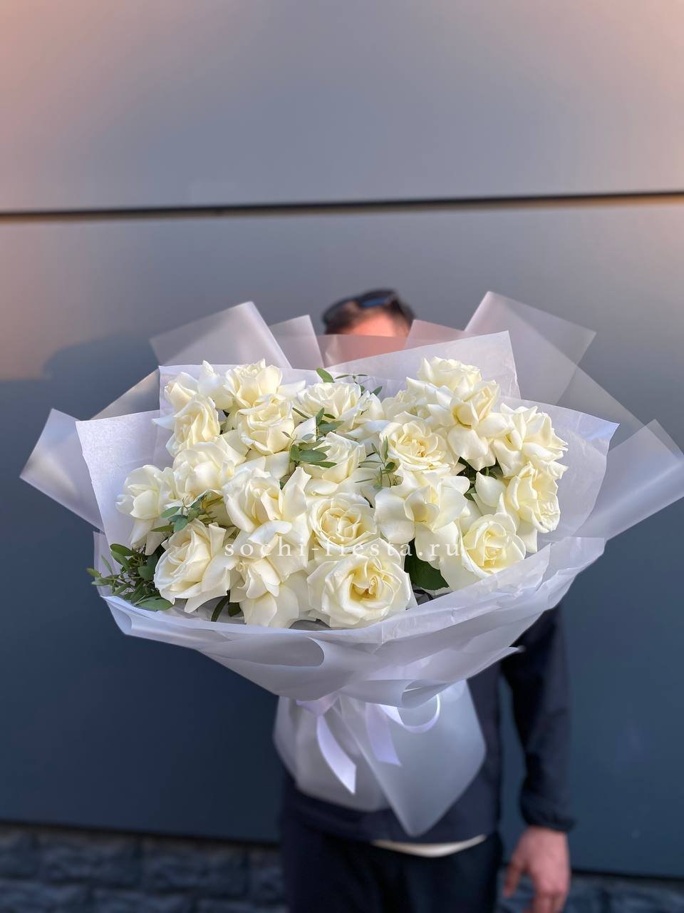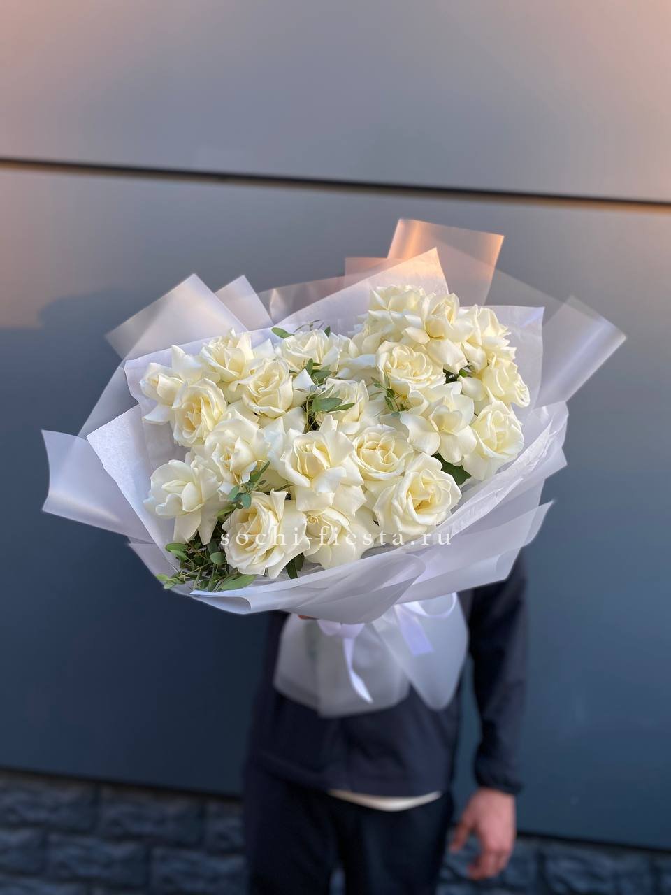 Пышный букет из белых роз
