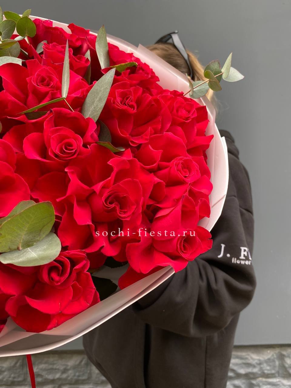 французские розы, эвкалипт, лента, авторская упаковка.