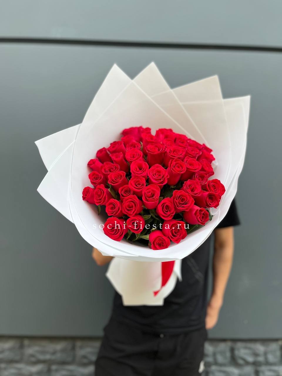 51 красная роза, фоамиран, лента.