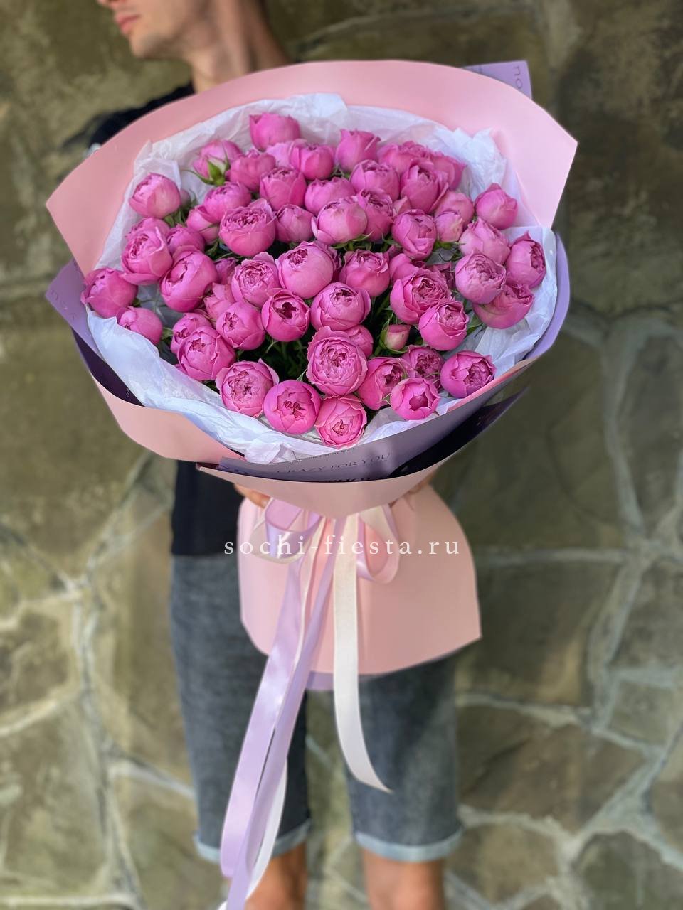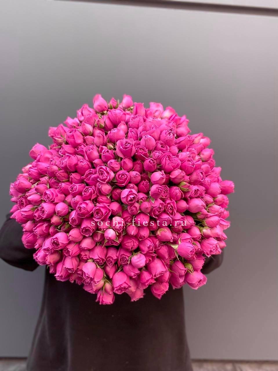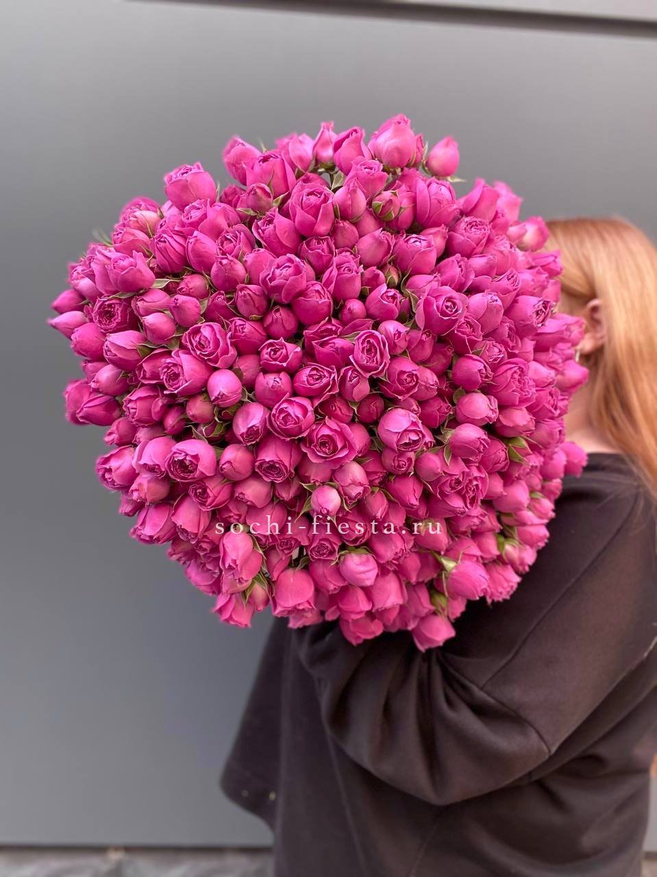 пионовидные розы кустовые мисти баблс в малиновом оформлении.