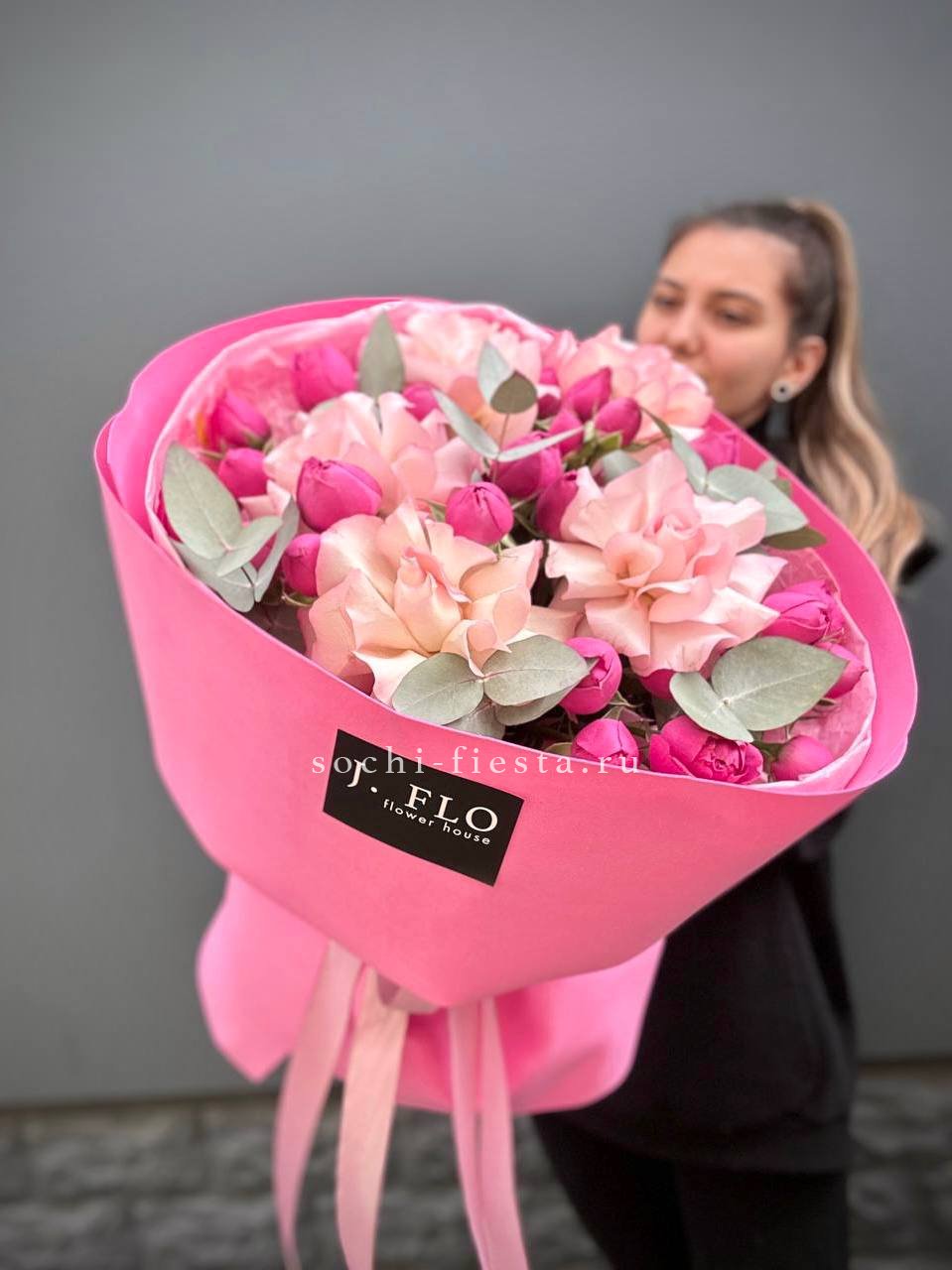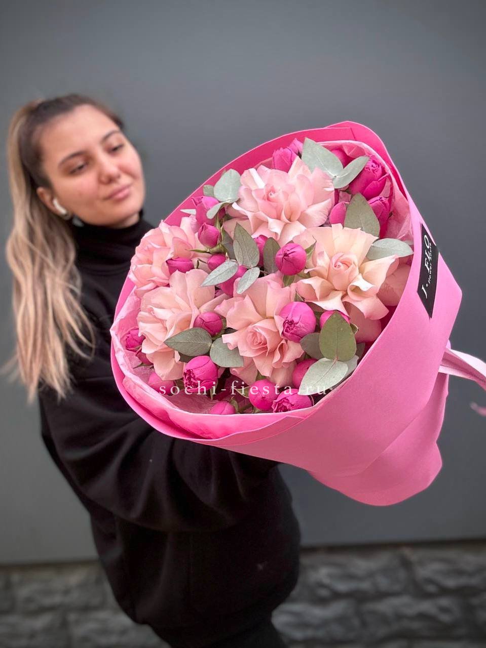 Для заказа товара "Букет французских и пионовидных роз "Ламиносо"" с доставкой в Белгороде нажмите в корзину