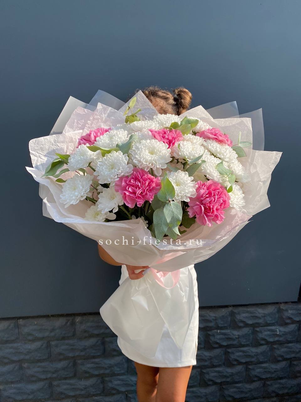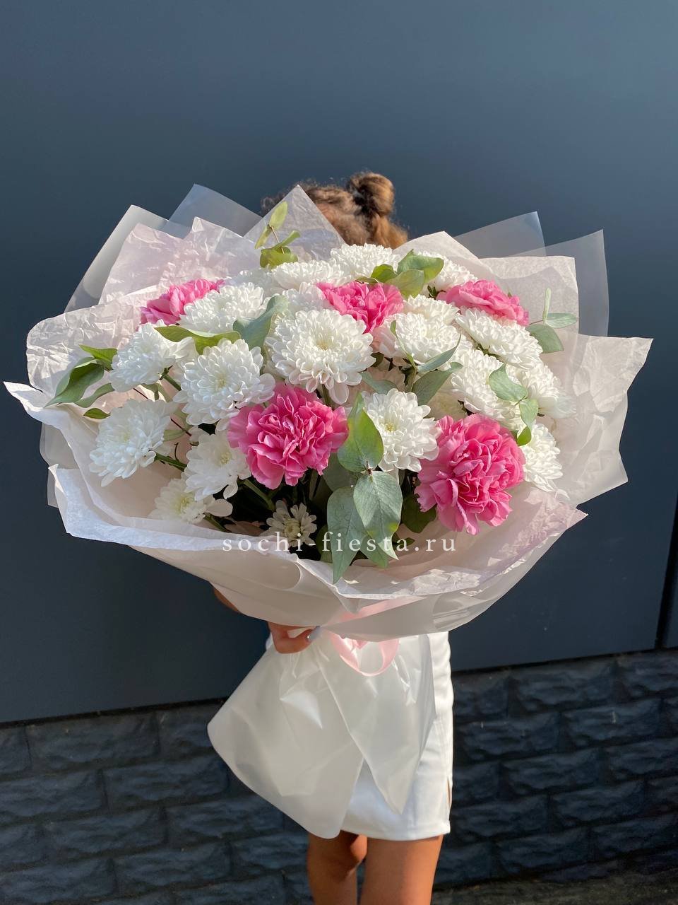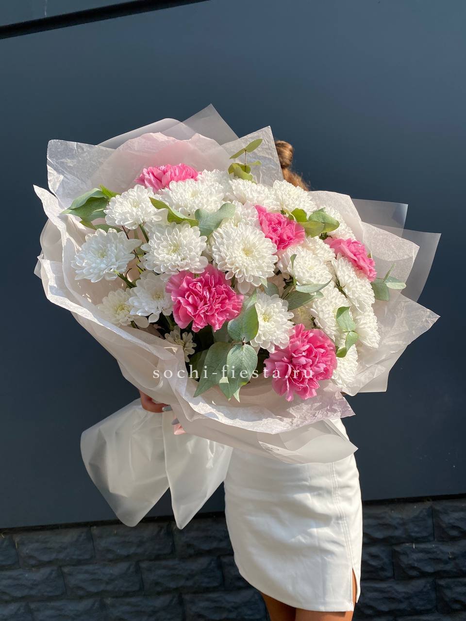 Для заказа товара " Букет хризантем и диантусов "Воздушный"" с доставкой в Белгороде нажмите в корзину